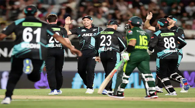 इसके बाद डफी ने राउफ को आउट किया और अब्दुल समद ने 30 गेंदों पर 44 रन बनाकर अकेले संघर्ष किया। डफी अपने अंतिम ओवर में वापस आए और अपने स्कोर में एक और विकेट जोड़ा और 20 रन देकर 4 विकेट लिए, जबकि फाउलकेस ने कुल तीन विकेट लिए। इससे पहले, सलामी बल्लेबाज सीफर्ट और एलन ने न्यूजीलैंड को शानदार शुरुआत दिलाई और मेजबान टीम ने 3.5 ओवर में 50 रन बनाए। लेकिन पाकिस्तान को तुरंत सफलता मिल गई जब हारिस राउफ ने सीफर्ट को आउट किया, जो डीप मिडविकेट पर शॉर्ट बॉल खींच रहे थे, जहां खुशदिल ने शानदार कैच लपका।